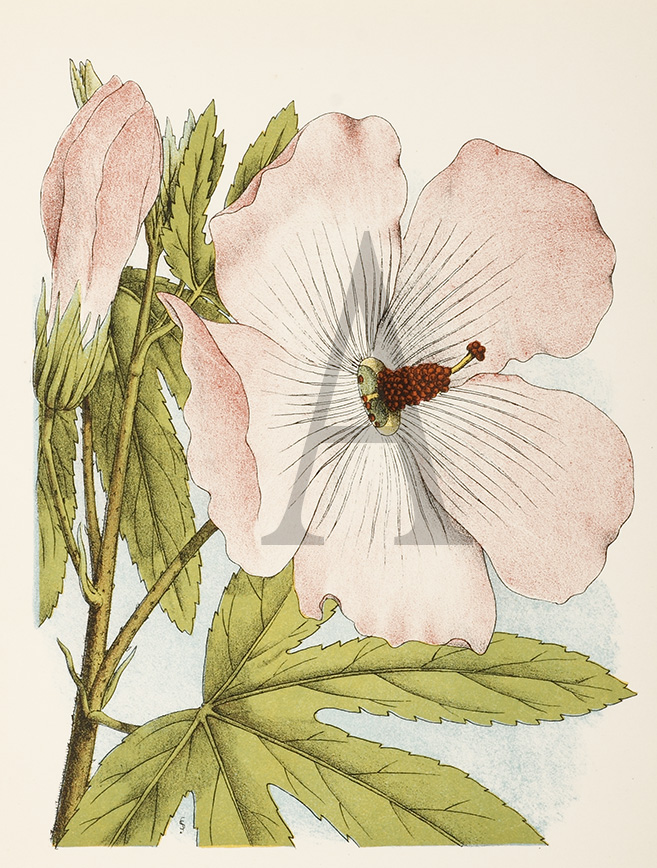 C.19th colour lithograph of the Australian native Pink Hibiscus.