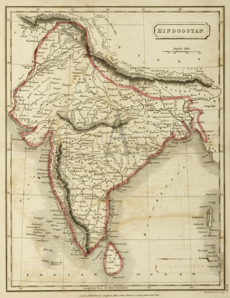 Nineteenth century engraving of India and Ceylon.