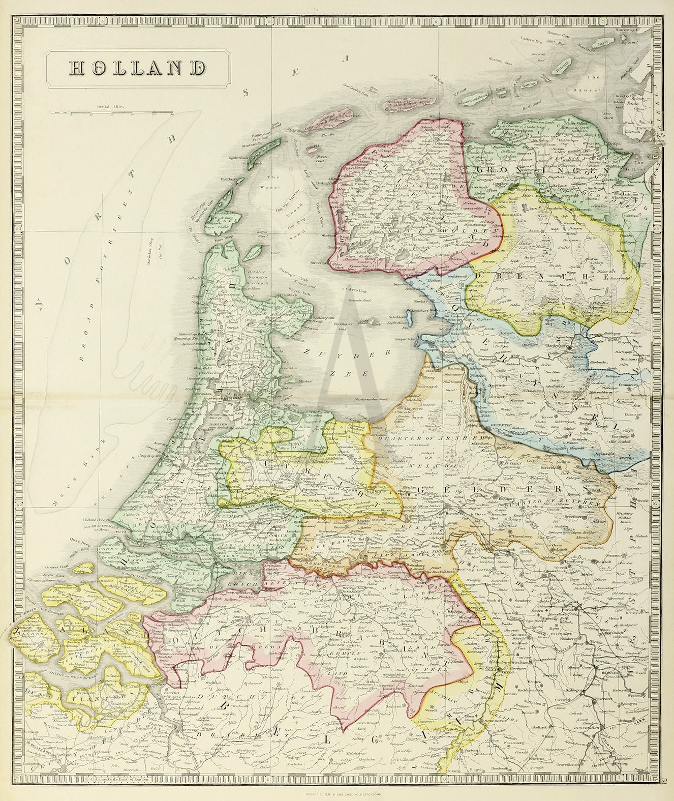 Large and detailed map of Holland From Philips’ New General Atlas, railways are marked.