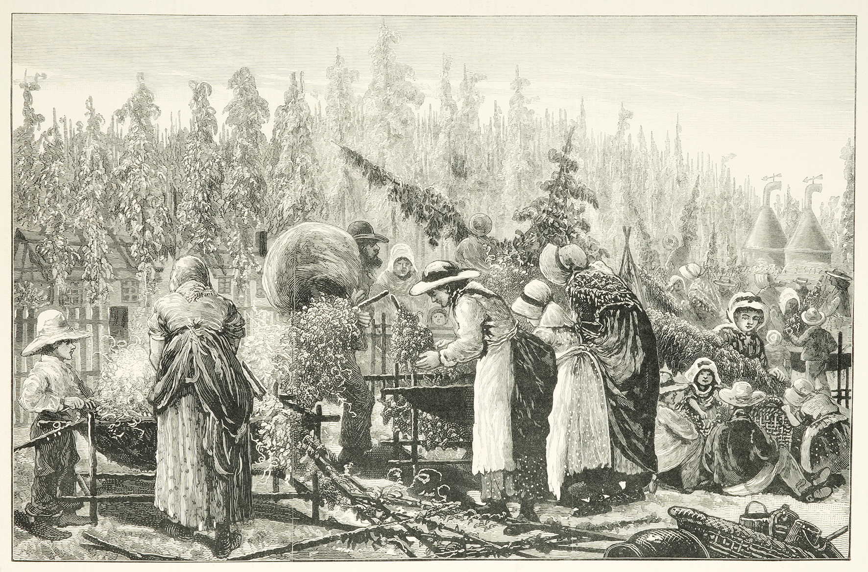 Rare engraving of hop pickers, from the original edition of