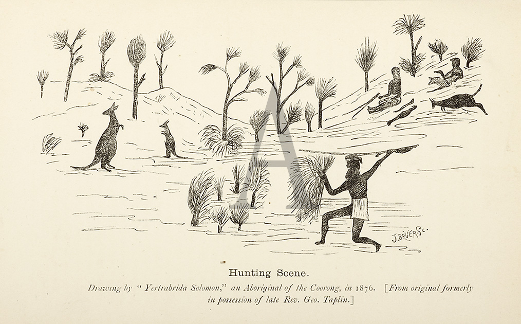 Engraving of a drawing by “Yertrabrida Solomon,” of an Aboriginal from the Coorong, in 1876. [From original formerly in possession of late Rev. Geo. Taplin.]
