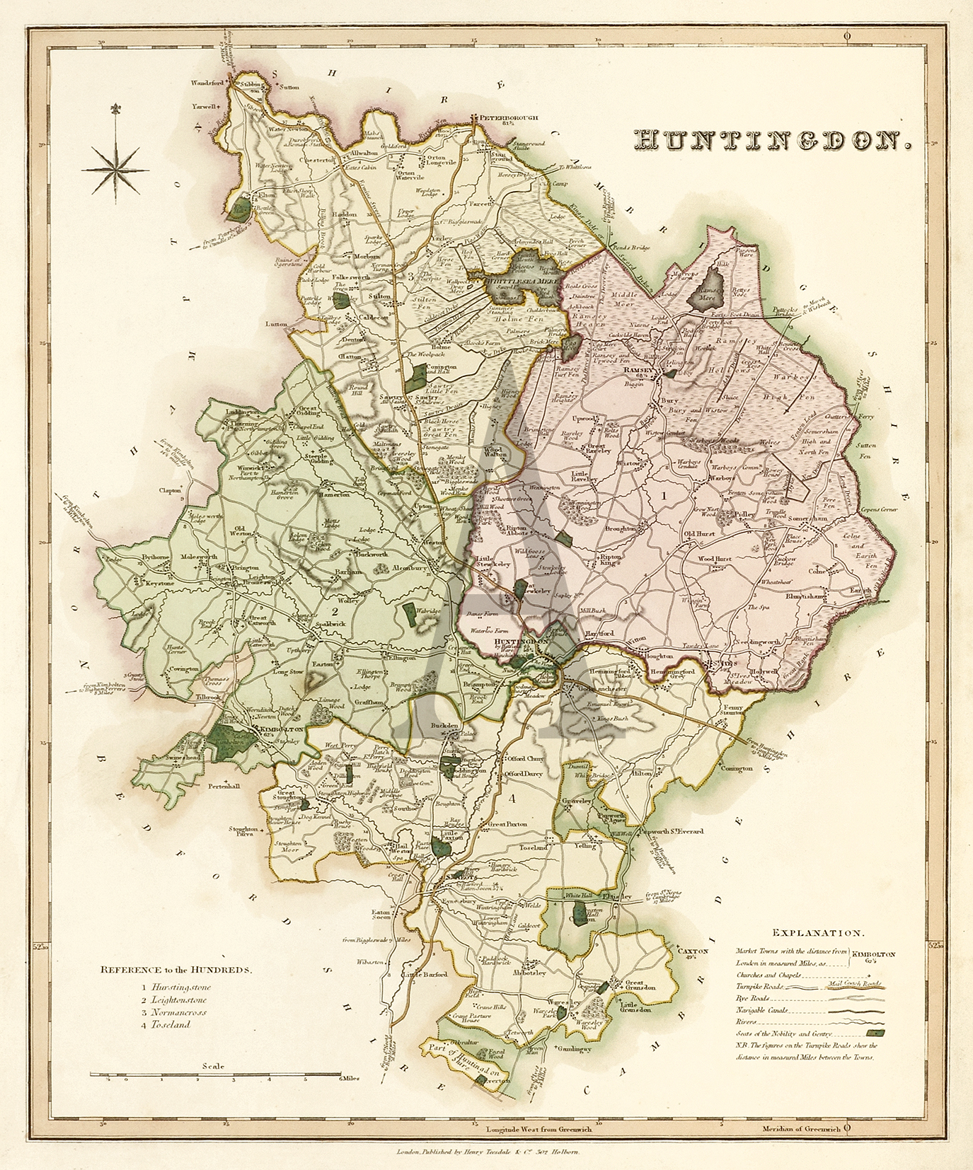 County map by Robert Rowe (1775-1843) an English engraver and publisher maps and atlases. The English Atlas contained maps of all the English counties, maps of Scotland, Ireland and Wales, which he published in 1813. Soon after Henry Teesdale (1776-1856) also a publisher of maps and atlases in London acquired the plates and published under his own name.