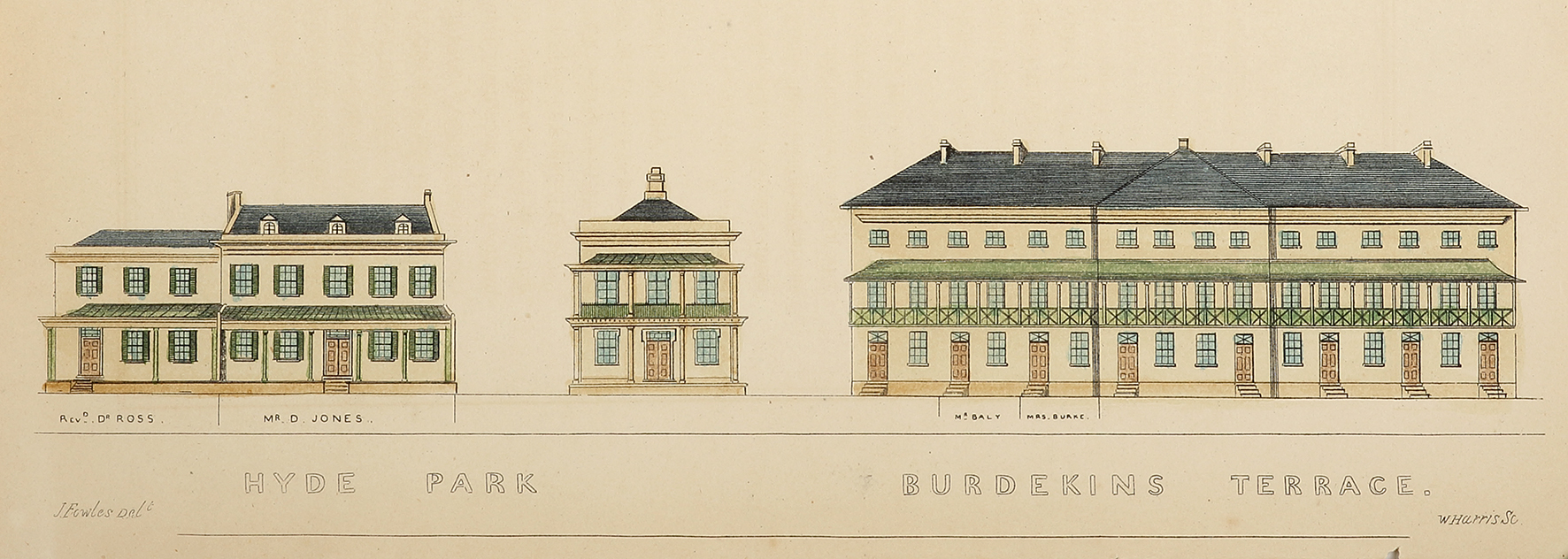 Fowles arrived in Sydney from London in August 1838, accompanied by his wife, as cabin passenger on the Fortune. He came to public attention in 1847 with his contributions to the first exhibition of the Society for the Promotion of Fine Arts in Australia. In July 1848 Fowles issued the first part of his series Sydney in 1848 which contained 'elegant' streets and buildings which were made with painstaking accuracy 'to remove the erroneous and discreditable notions current in England concerning this city'. By 1858 Fowles had won a new reputation when Bell's Life in Sydney and Sporting Chronicle designated him 'Our Colonial Herring' as a result of a series of portraits of 'celebrated Australian cracks', racehorses and riding horses. By 1855 Fowles was training and examining young art teachers in drawing for the National Board of Education. In an obituary notice he was described as 'Father of drawing in the city'.