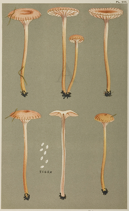 Lithograph of mushrooms from Illustrations of British Fungi by Mordecai Cubitt Cooke (1825 – 1914) who was an eminent mycologist, and the founder of the journal ‘Grevillea and one of the great promoters of mycology in England. ‘Cookes’s most ambitious work, the “Illustrations of British Fungi, is a monumental work of labor and patient application. I am told that not only did he make the original drawings of the plants, but that the figures were actually transferred by Cooke to the stones from which they were printed’ (C.G. Lloyd, Letter no. 57). ‘The number published of the Illustrations of British Fungi must have been very small as there were only 70 subscribers in Britain when volume 2 was issued.’ Stafleu & Cowan