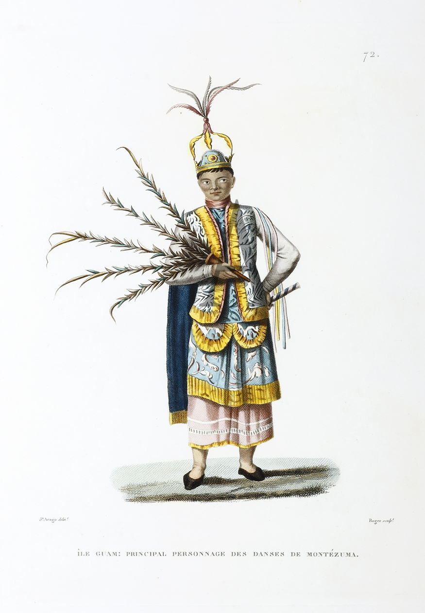 Guam Island: Main Character dances Montezuma When Ferdinand Magellan first discovered Guam and the Marianas in 1521, he named the islands the ‘Islands of Sails’ but soon renamed them the ‘Islands Ladrones’ (Island of Thieves) after a misunderstanding led to one of his ships, the Trinidad, being raided by a group of local Chamorro people who believed that they were engaging in a trade. Despite Magellan’s discovery of the island, Guam was not claimed for the Spanish until 1565 and subsequently became an important transit and supply port for the Manila galleons on their voyages between Manila and Acapulco. The first colonisation occurred in 1668 with the founding of a Catholic mission by the Jesuit Padre Diego Luis de San Vitores. Louis Claude de Freycinet visited the islands shortly after the halt of the Manila galleon trade due to the Mexican Revolution of 1815 and he wrote critically about the economic depression and poverty that had occurred as a result. Freycinet accomplished one of the most thorough scientific and historical studies of Guam of the eighteenth and nineteenth centuries, adding to existing historical accounts by interviewing the local Chamorro and Spanish people. He published the first hydrographic survey of all fifteen islands within the Marianas archipelago in 1826 after leading the famous Uranie voyage.