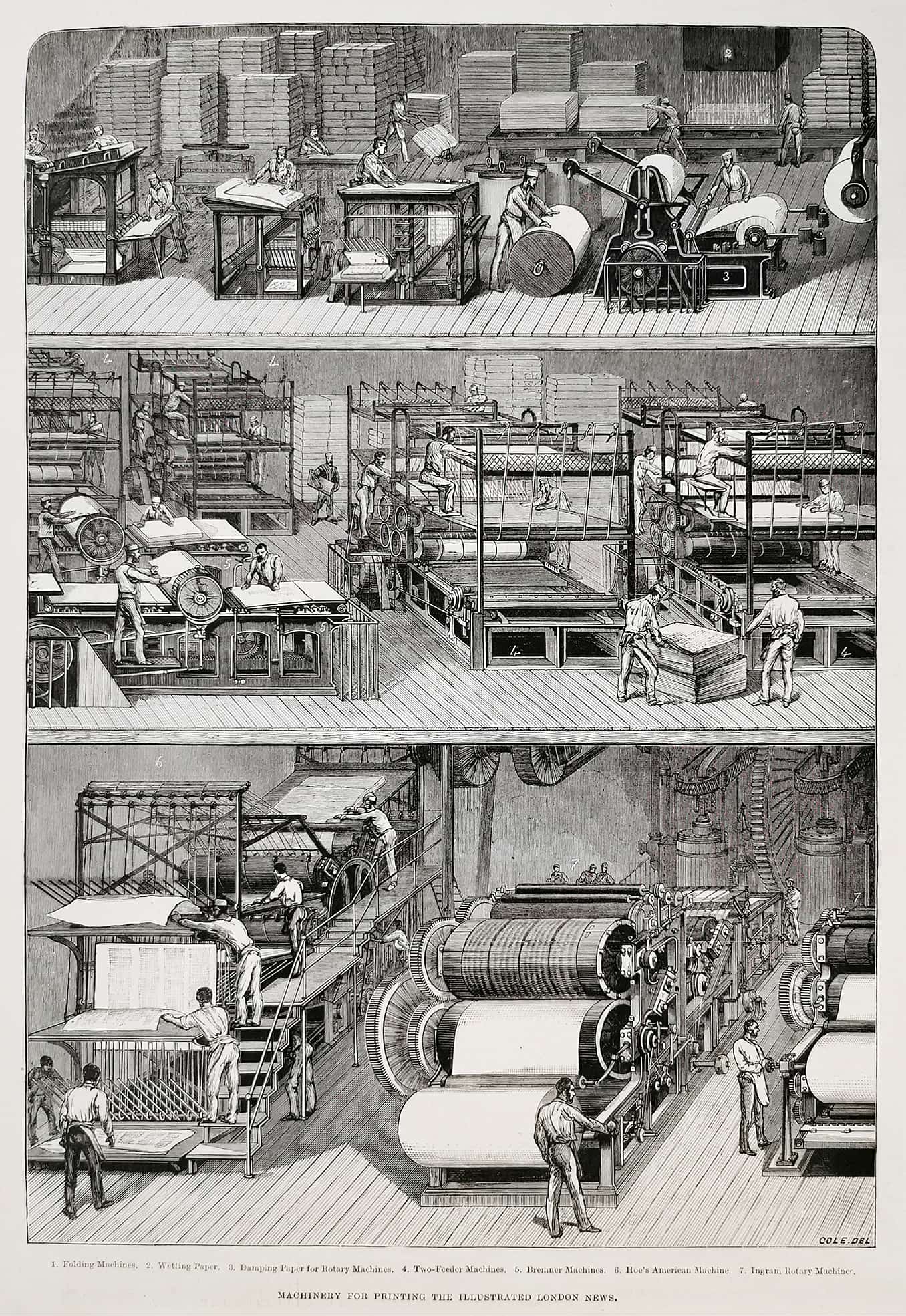 Engraving of the machinery for the printing process at the Illustrated London News’ newspaper.