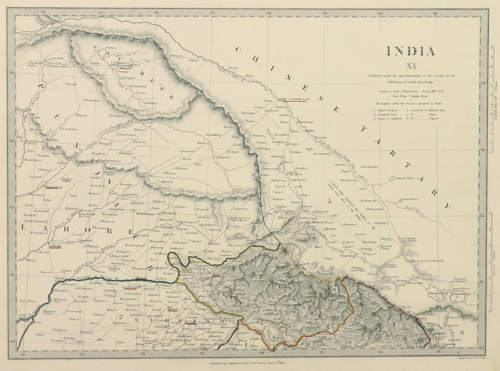 Very detailed map of northern India published by the Society for the Diffusion of Useful Knowledge.