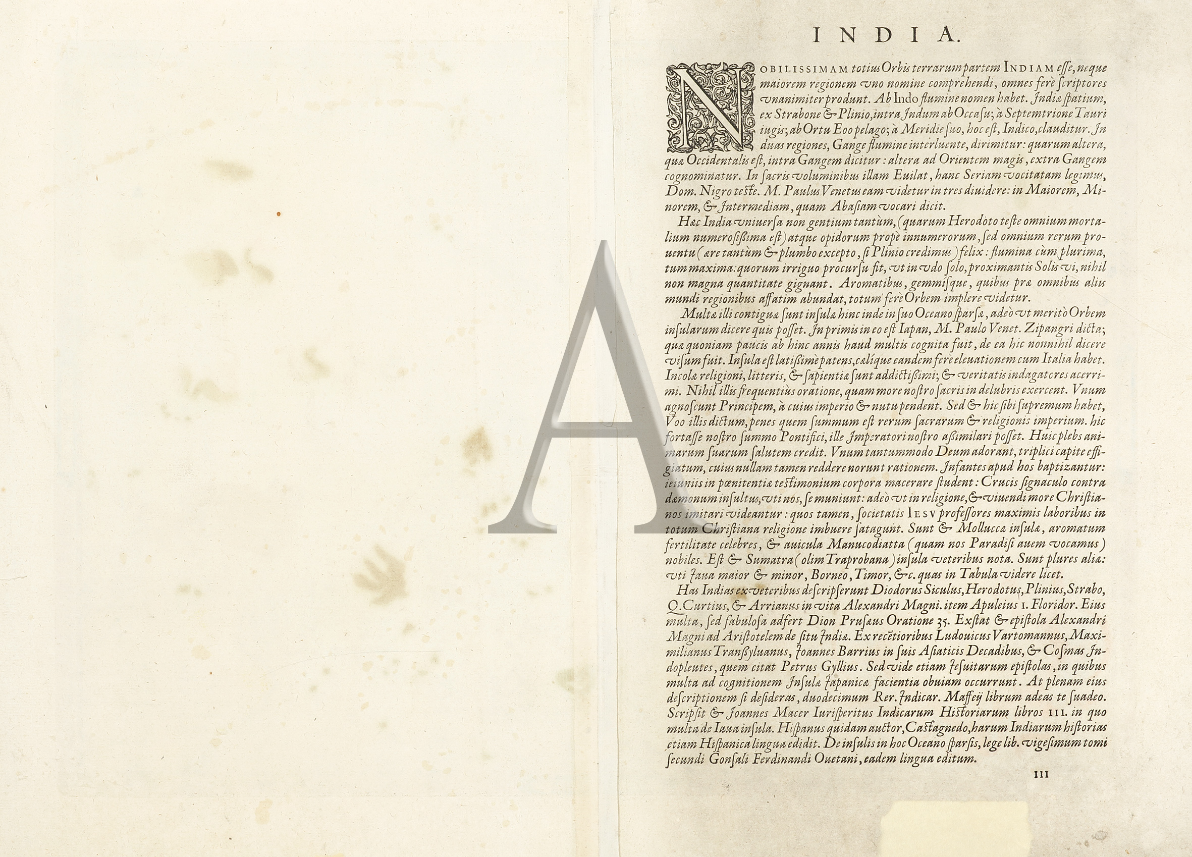 One of the earliest maps to focus on the East Indies, published in Ortelius’s Theatrum Orbis Terrarum, widely regarded as the first modern atlas for having all the maps in a similar size and format.