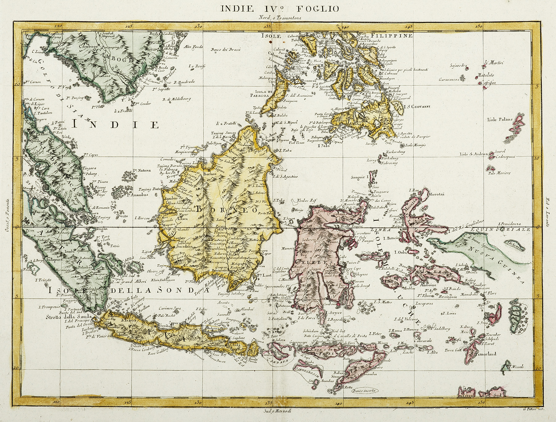 Detailed c.18th map of the East Indies by Antonio Zatta. From Zatta, Atlante Novissimo, Illustrato ed Accresciuto Sulle Osservazioni, e Scoperte Fatte dai piu Celebri e piu Recenti Geografi