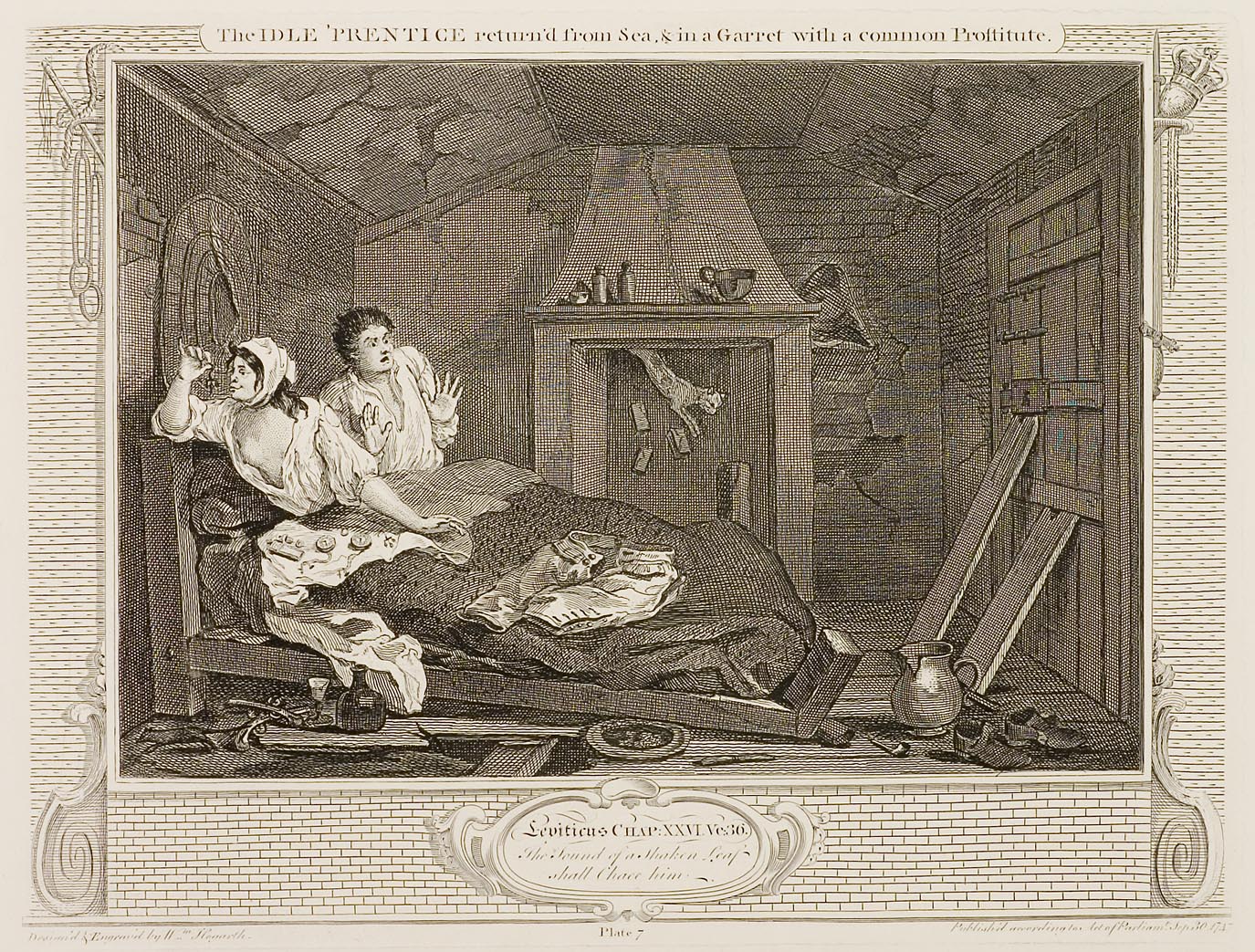 Plate 7: The Idle ‘Prentice return’d from Sea & in a Garret with a common Prostitute