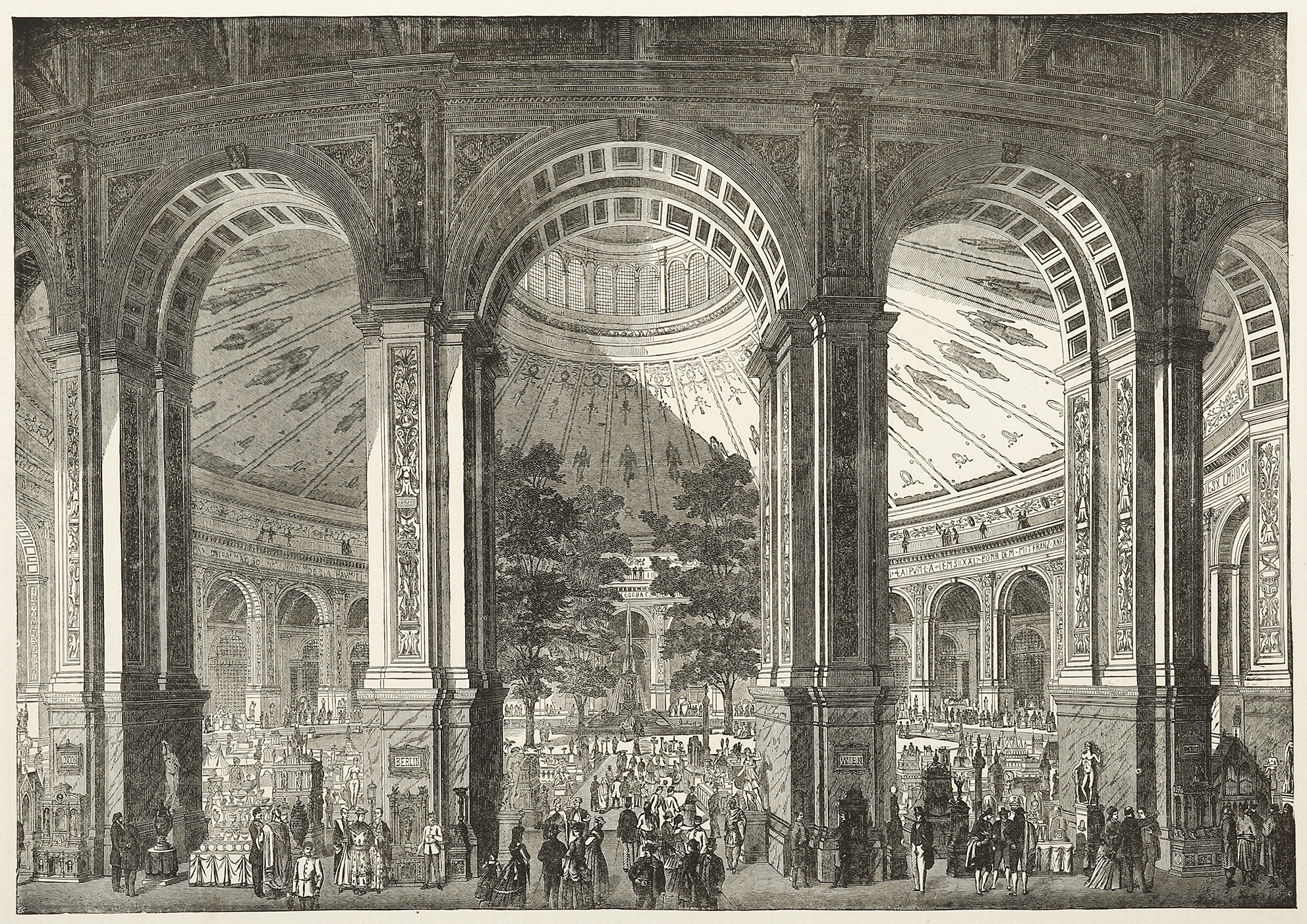 Dramatic scene of the interior of the Viennese Exhibition Building. From The Illustrated London News.