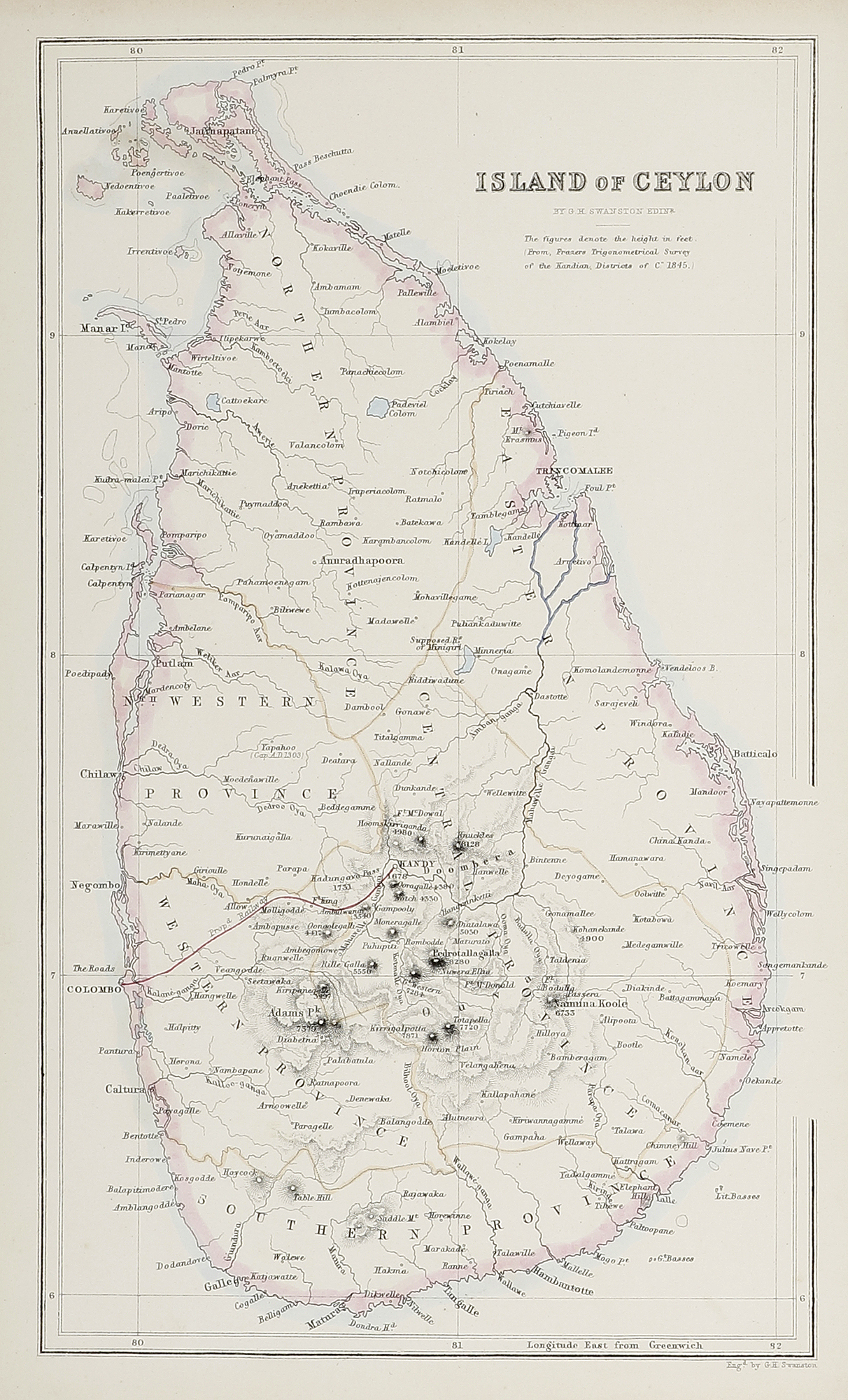 Scarce c.19th finely engraved map of Sri Lanka with excellent detail.