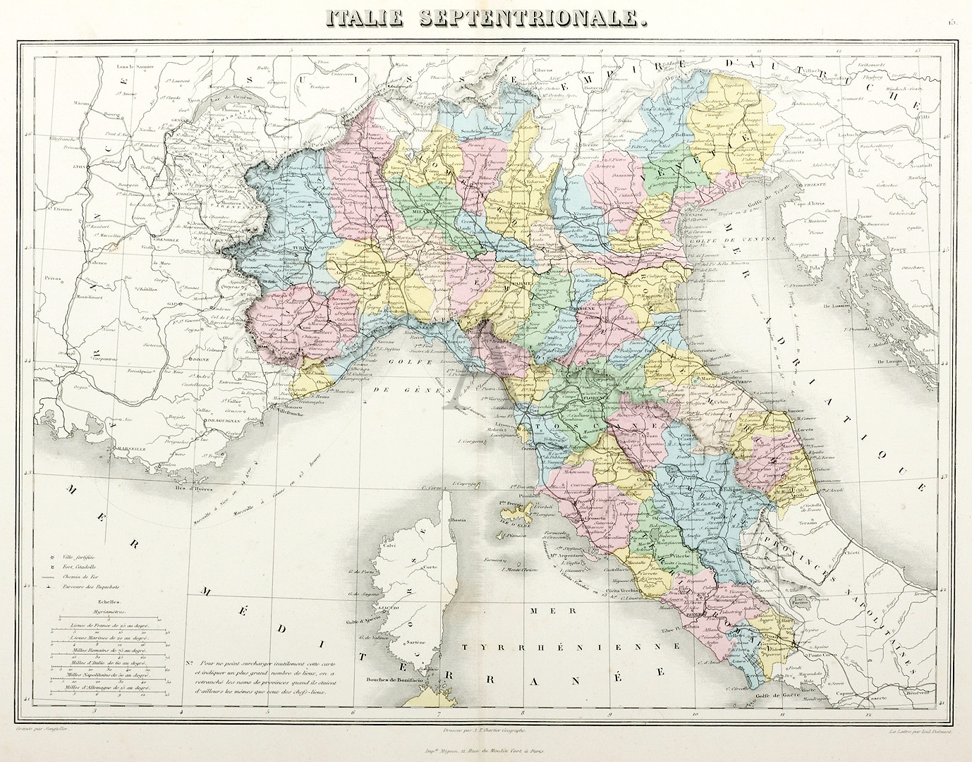 French cartographer and editorial publisher worked fromRue du Chemin des Plantes no 5 & 34 and later moving toRue du Moulin Vert 11, Paris. He produced a Geographe Universalle Atlas Migeon revue Vuillemin in 1874