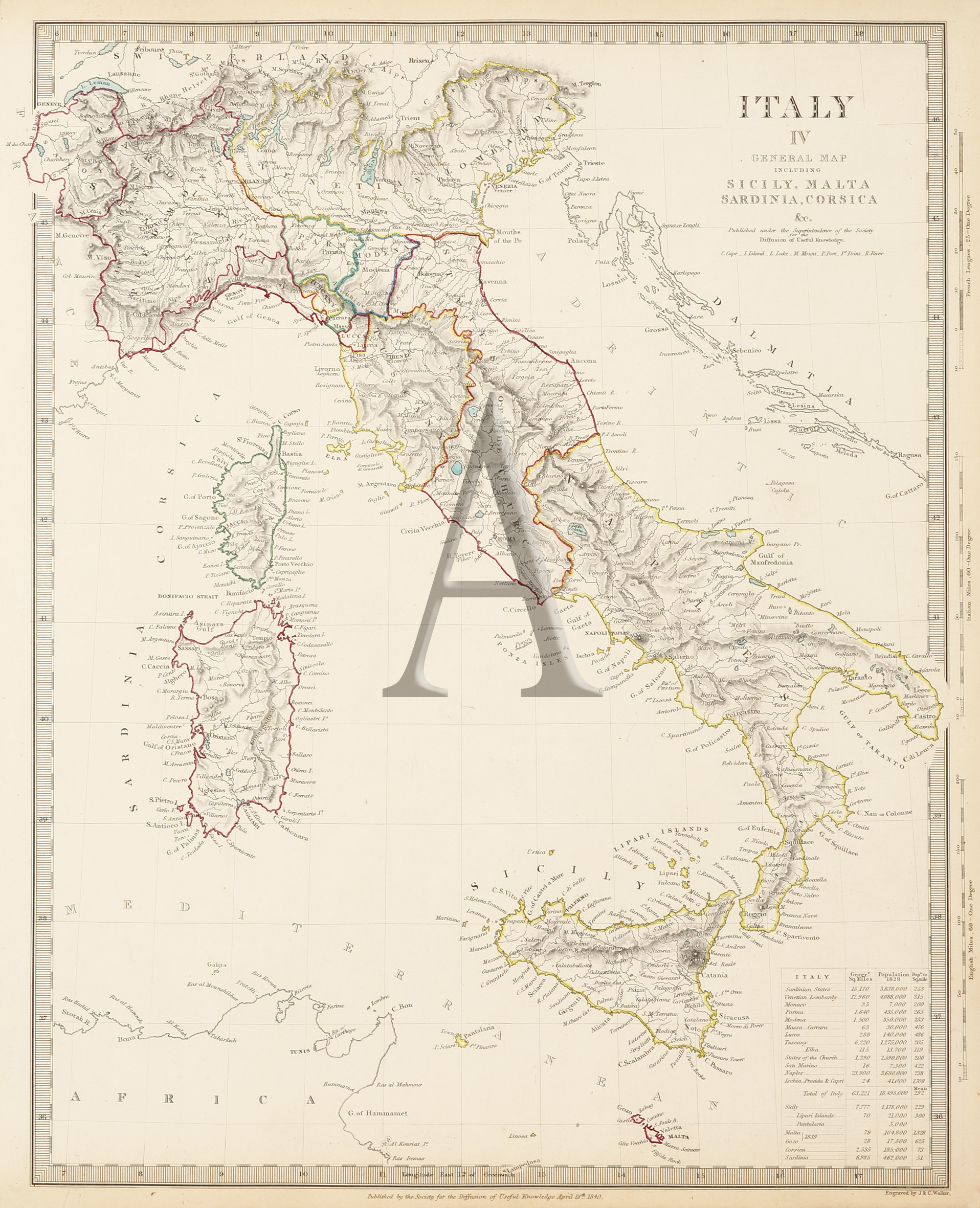 Italy IV General Map including Sicily, Malta, Sardinia, Corsica &c