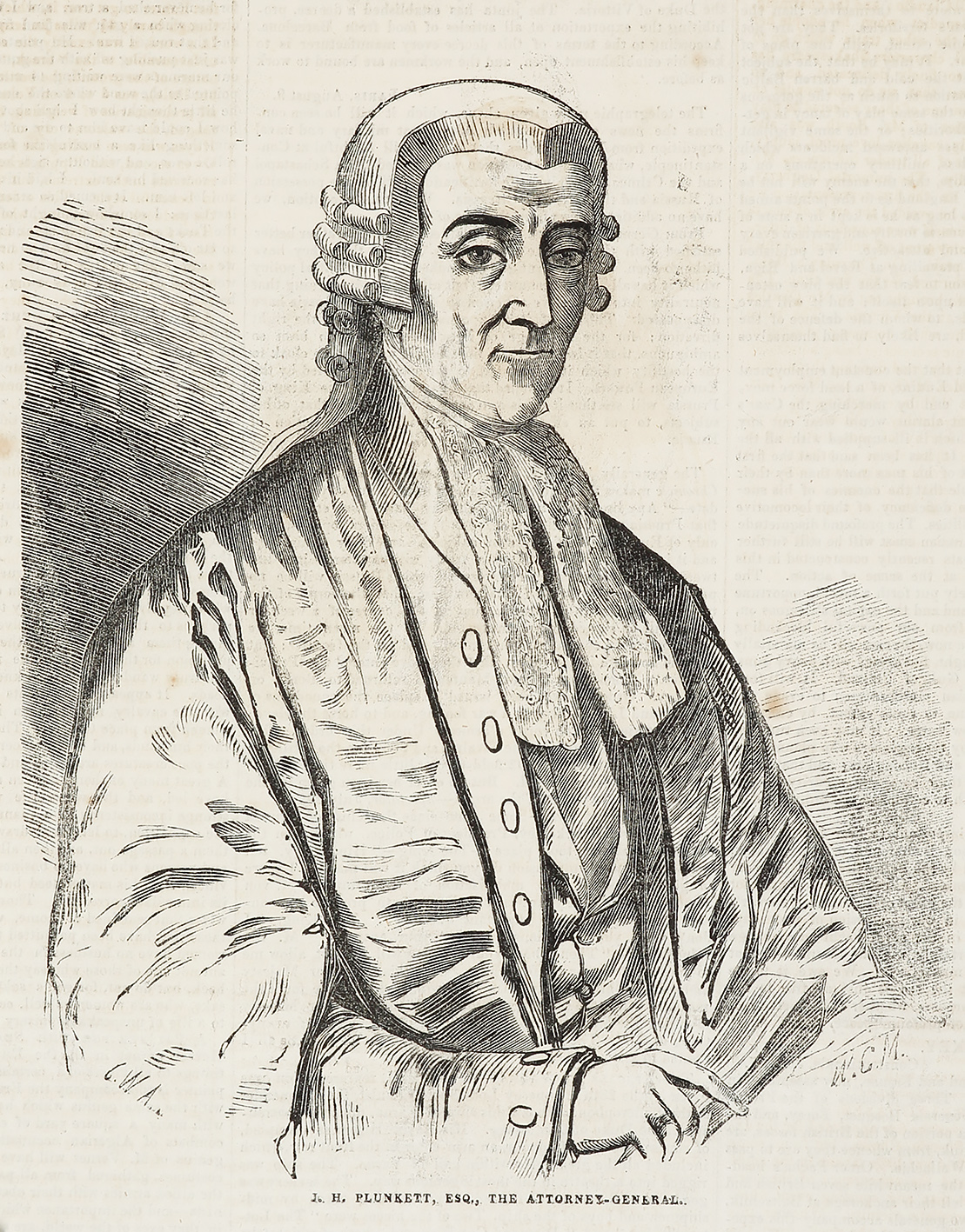 Rare c.19th engraved portrait of John Hubert Plunkett (1802-1869) who was Attorney-General of New South Wales, an appointed member of the Legislative Council 1836–41, 1843–56, 1857–58 and 1861–69. He was also elected as a member of the Legislative Assembly 1856–60. He is best known for the prosecution of the colonists who brutally murdered 28 Aboriginals in the Myall Creek Massacre of 1838, seven of whom were convicted and hanged.