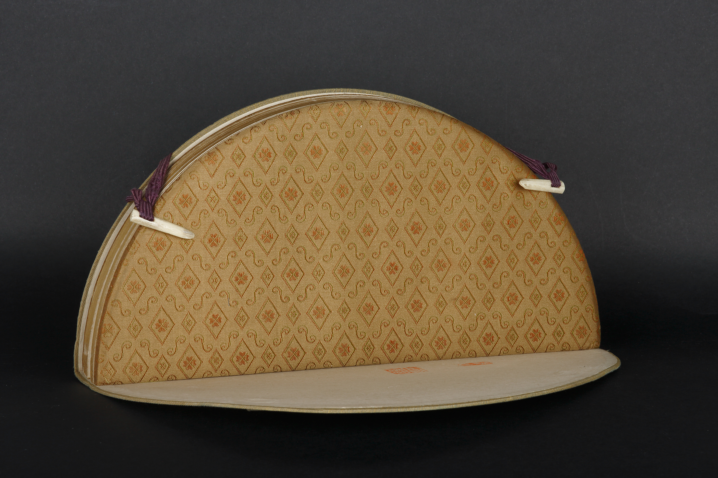 Beautifully presented watercolour album, in oval format Orihon (folding) binding with silk cloth covered boards, gilt page edges and traditional ties, in an oval album with fourteen signed and folded watercolours of Mount Fuiji, birds, trees. The watercolours are all … Read Full Description