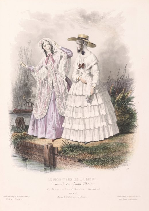 Achille Deveria introduced David to the Journal des demoiselles and the Journal des jeunes personnes, for which he produced lithographs from 1839 to 1842. David’s albums were often published as a supplement to women’s magazines. He drew all the plates for the Le Moniteur de la Mode for fifty years. He was a pioneer in introducing contemporary backgrounds in his plates.