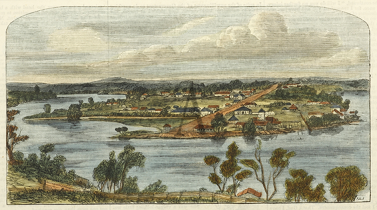 Rare c.19th hand coloured engraved view of Kangaroo Point, Brisbane.
