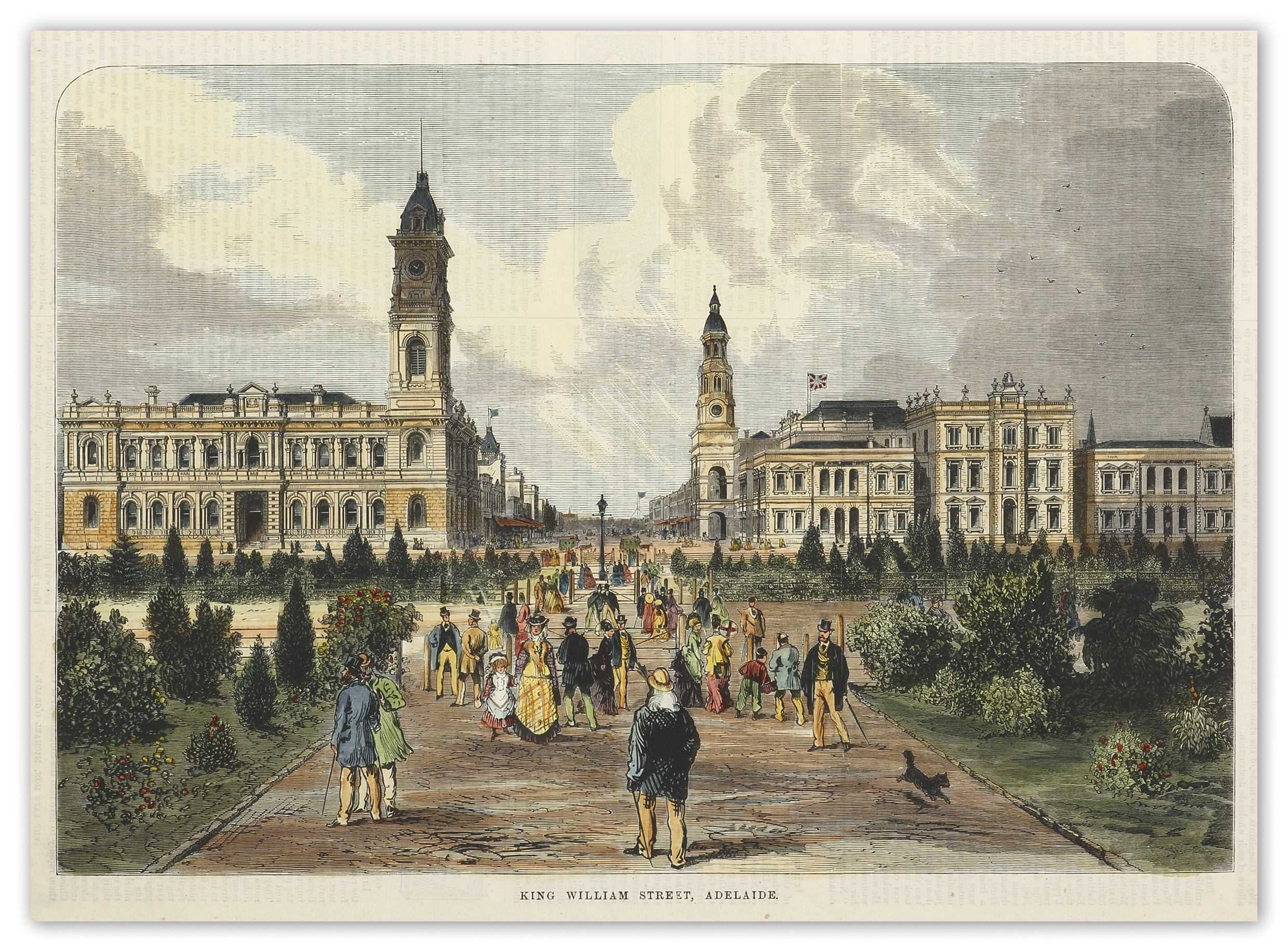 Scarce view of King William Street from Victoria Square looking north. From the original edition of the Australasian Sketcher. Collections:State Library of Victoria: Accession no: A/S19/02/76/181