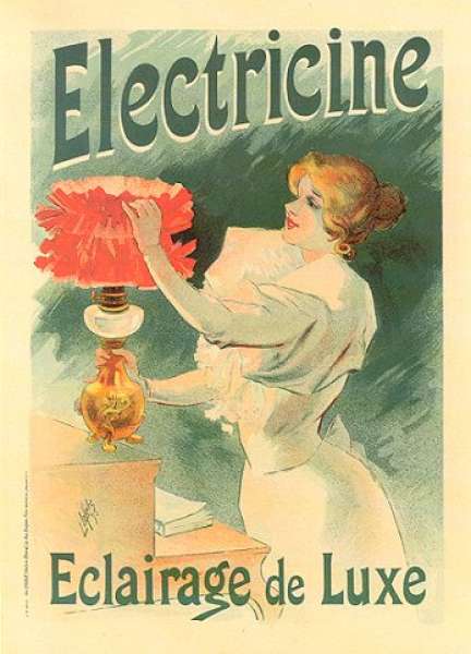 In this poster for the Electricine luxury lighting company, Lefeve creates a design worthy of his mentor Jules Cheret, whom Lefeve was a pupil of when he worked at the Chaix printing house.