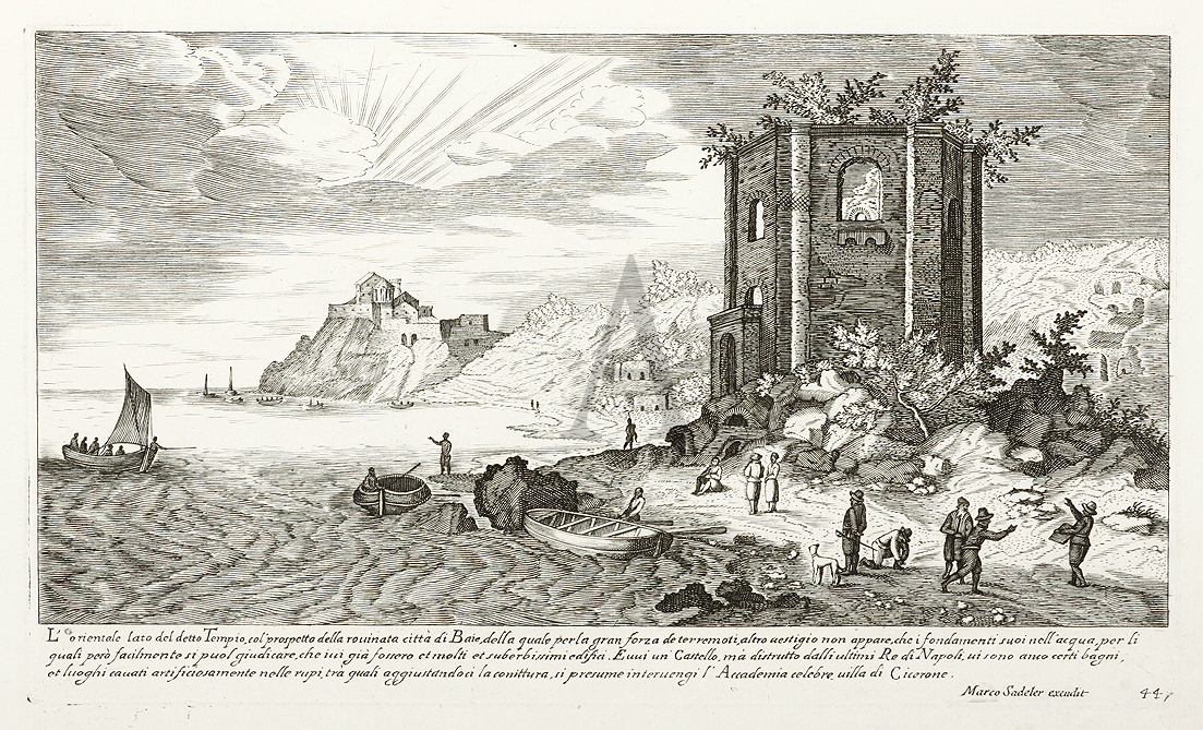 This series capitalised on the renewed interest in the monuments of classical antiquity which reached its climax in sixteenth century Rome. Marco Sadeler, whose name appears on the plates, was an engraver and print seller in Prague in the early 1600’s and probably the nephew of Aegidius. From, Vestigi delle Antichita di Roma Tivoli Pozzuoli et altri luochi.
