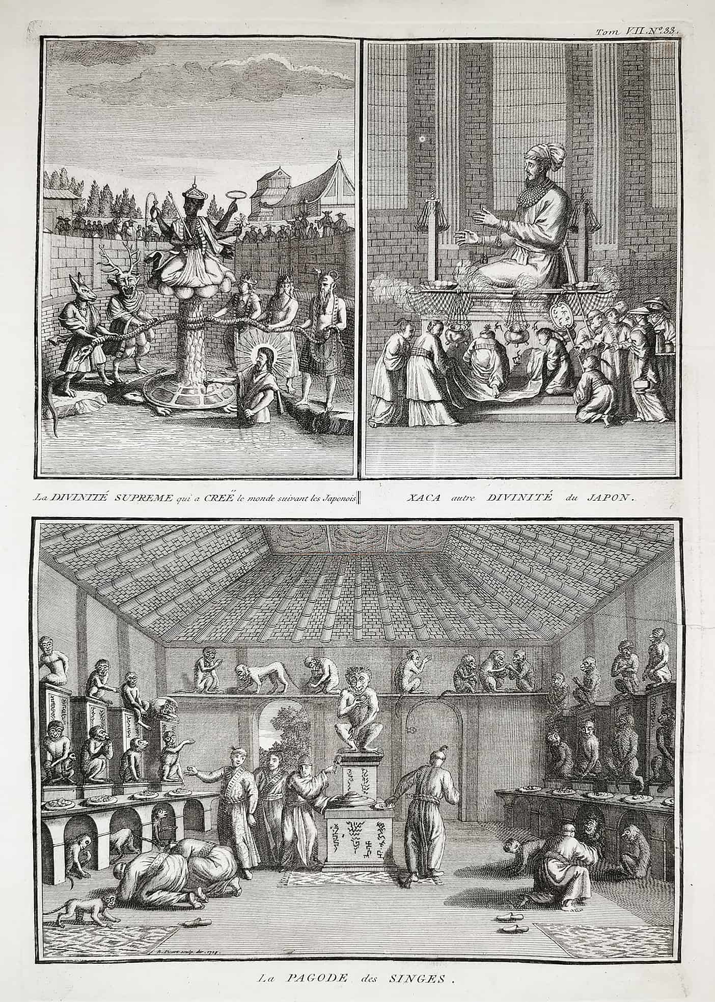 “The supreme deity who created the world according to the Japanese. Xaca another deity of Japan. The pagoda of the monkeys.” From Denis Diderot’s, Encyclopaedia which was a monument in the history of European thought, undermining the ancien regime and heralding … Read Full Description