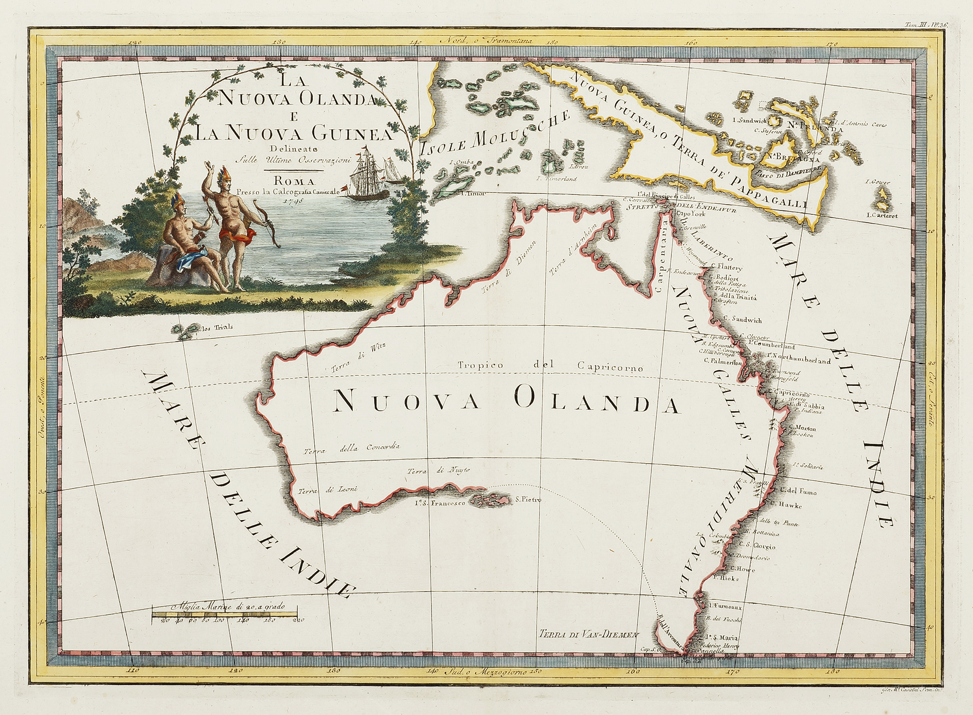 Very rare and important map of Australia based on Cook’s first voyage discoveries and one of only a handful of  c.18th maps to be solely devoted to the Australia continent. A magnificent example with full uncut margins unfaded original hand … Read Full Description