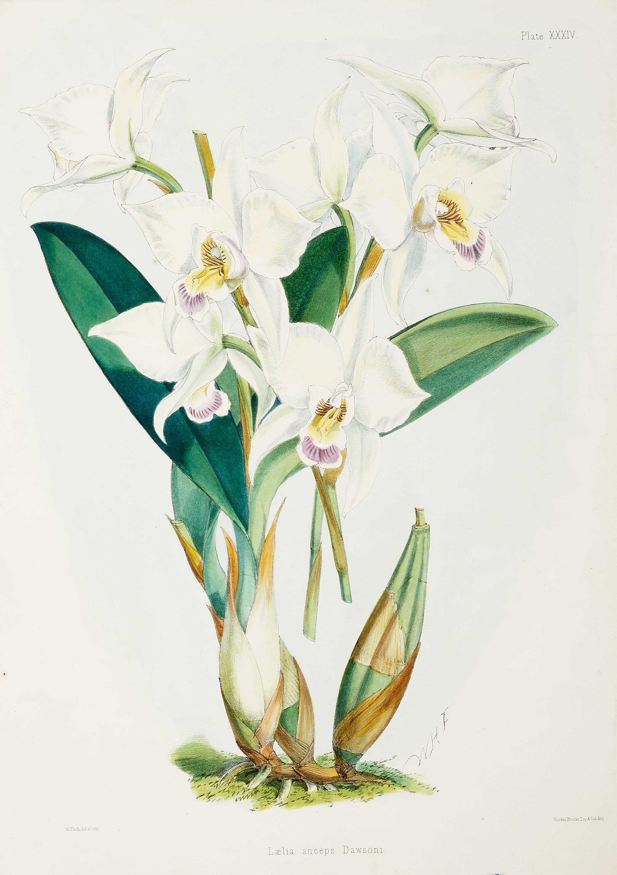 Rare folio sized orchid lithograph by Walter Fitch from the very rare series by Robert Warner, Select Orchidaceous Plants. Reference: Great Flower Books p.149