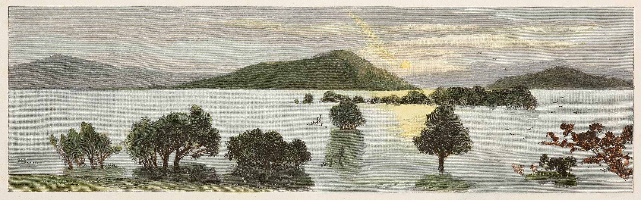 Colonial engraving of Lake St Clair which forms part of the Cradle Mountain-Lake St Clair National Park.