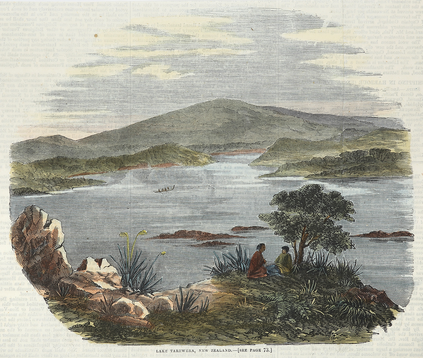 Lake Tarewera, New Zealand. - Antique View from 1866