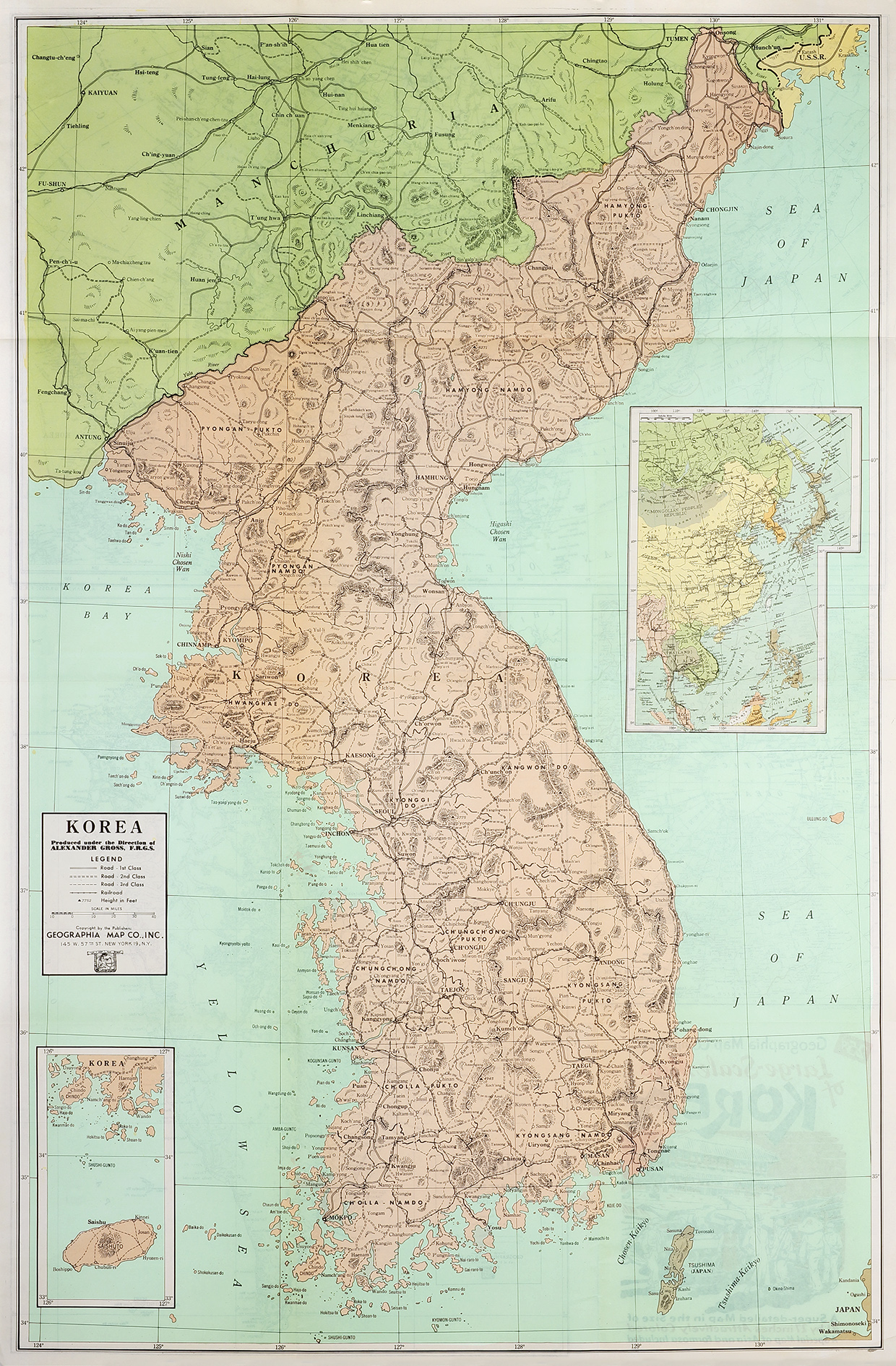 On the verso is the large map of Korea with two smaller inset maps of; Korea and Saishu Island and another of Asia extending from Russia to Borneo.