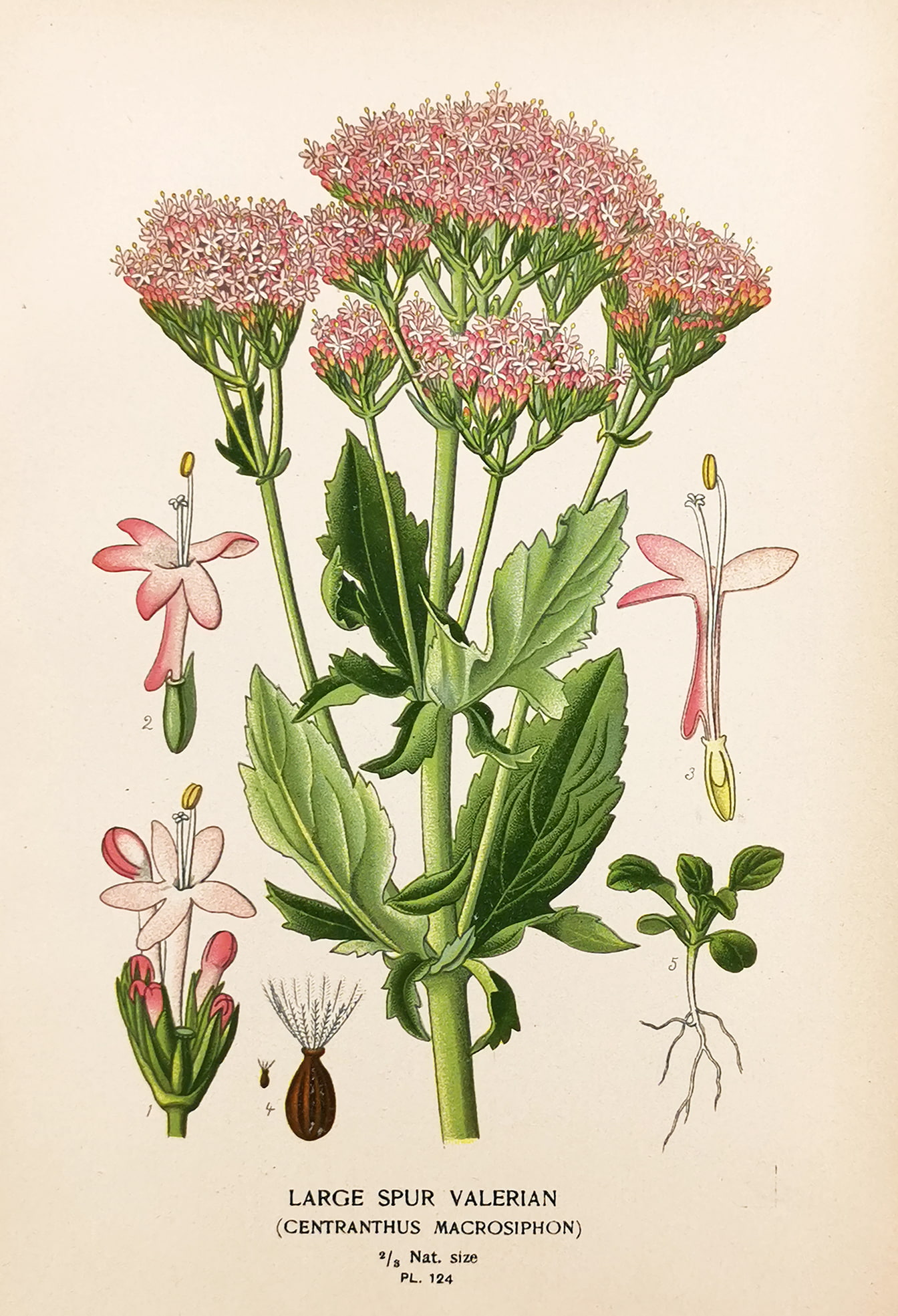 Engraving of the Large Spur Valerian. Fine botanical lithograph from Edward Step’s, Favourite Flowers of the Garden and Greenhouse.