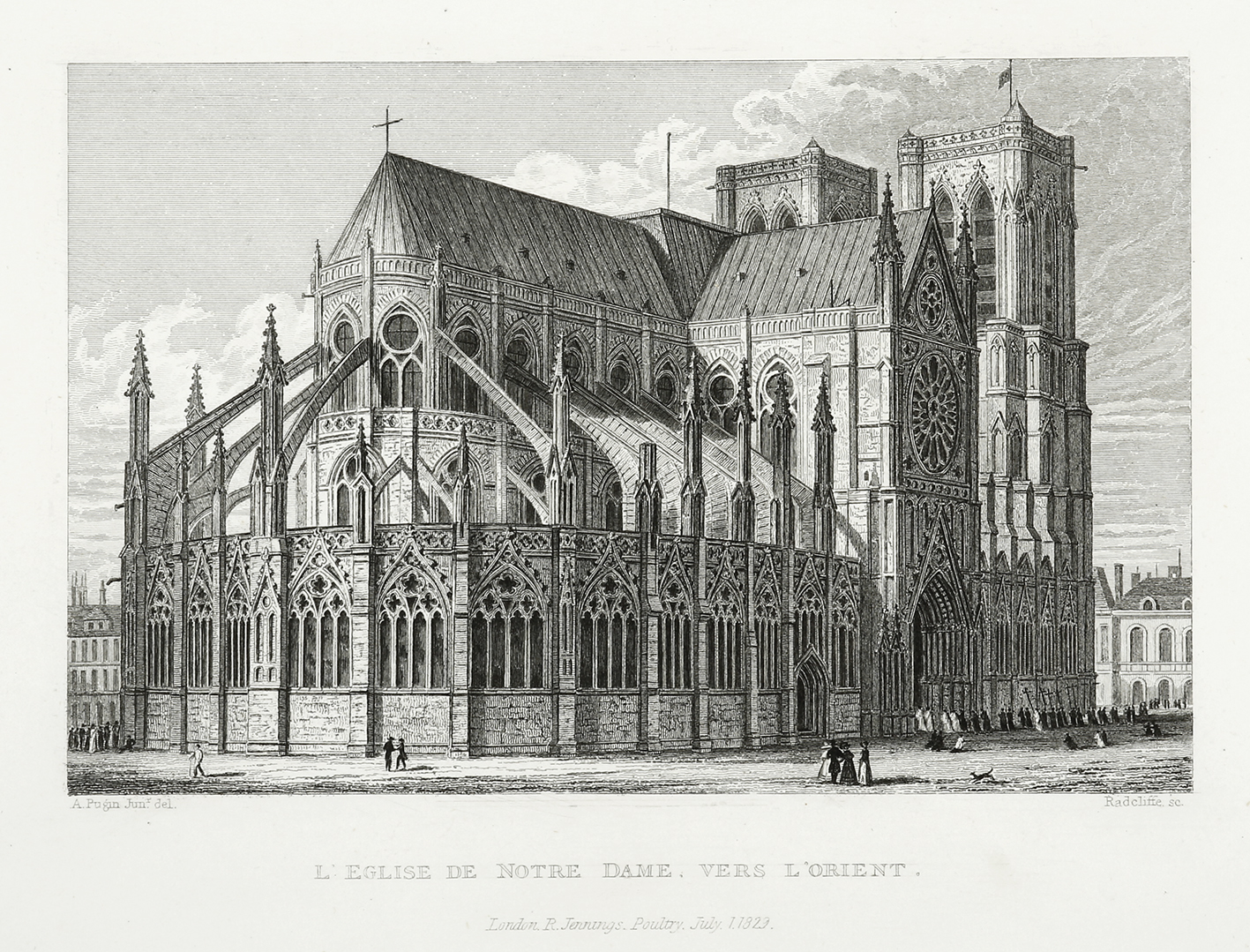 Nineteenth century engraving of the Cathedral of Notre Dame, from the eastern perspective.