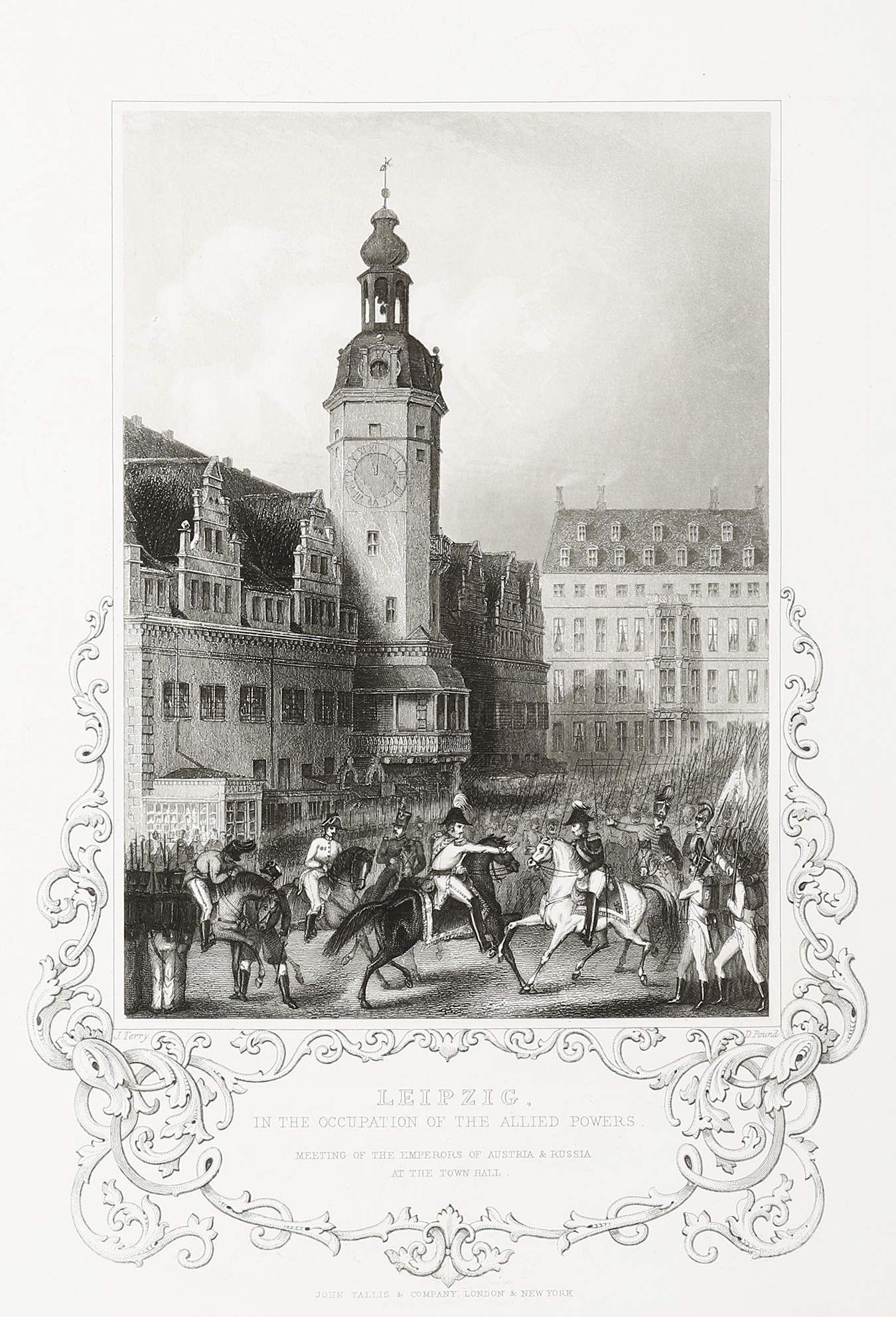 Military scene of the occupation of Leipzig by the Allied Powers.