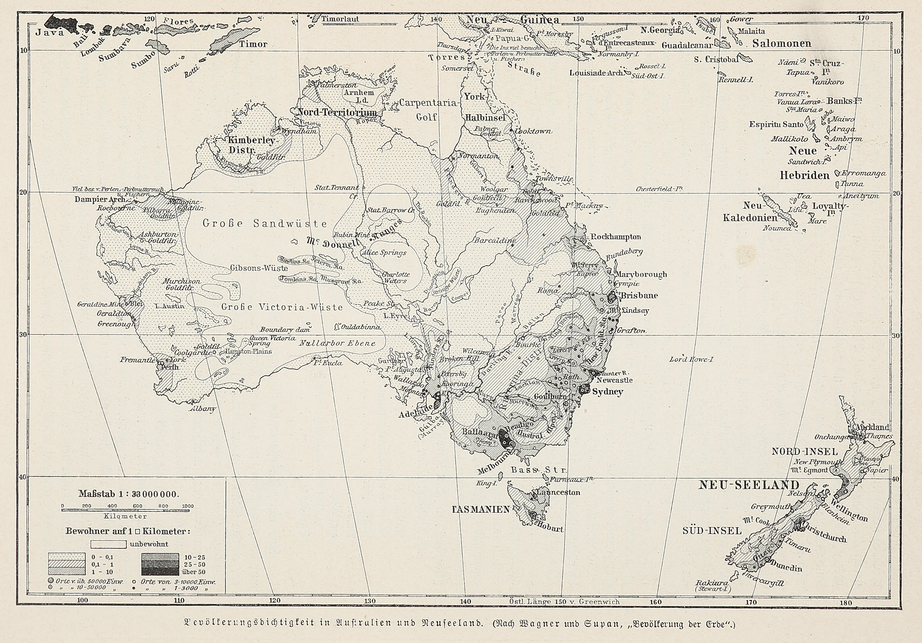 German geologist and professor of geography at the University of Giessen. He published a number important works on South America and Oceanie. This image reflects the interest created by German colonial expansion in the Pacific beginning with New Guinea in 1884.
