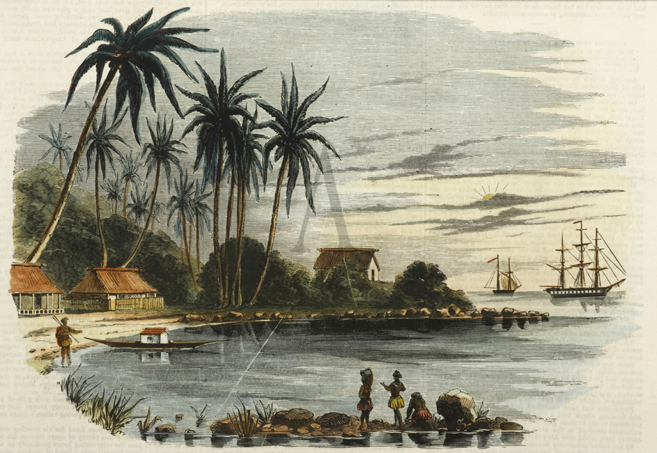 Scarce engraving of Levuka in 1865. From the original edition of the Illustrated Sydney News.