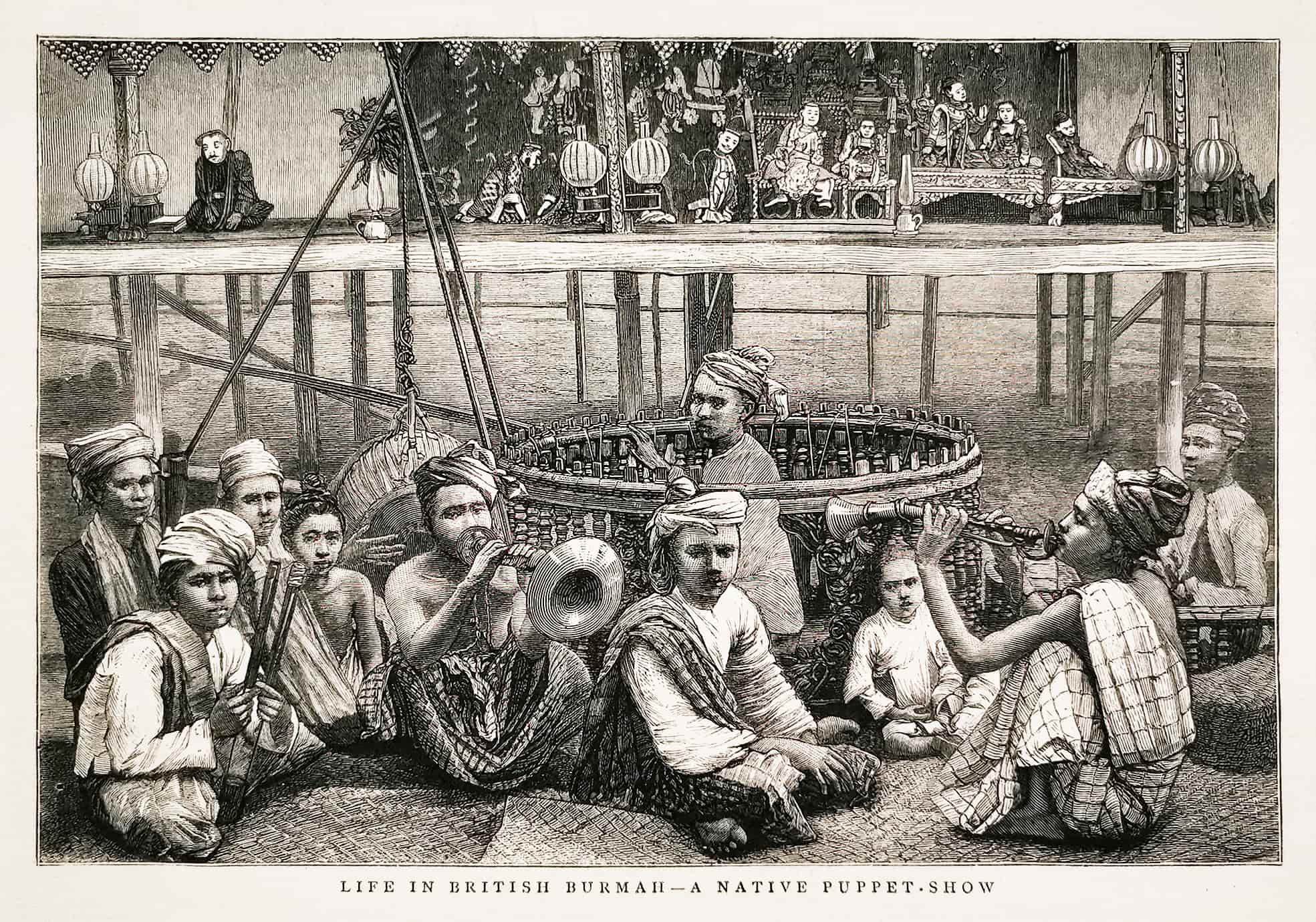 Engraving of the life in Burma. From the original edition of The Graphic.