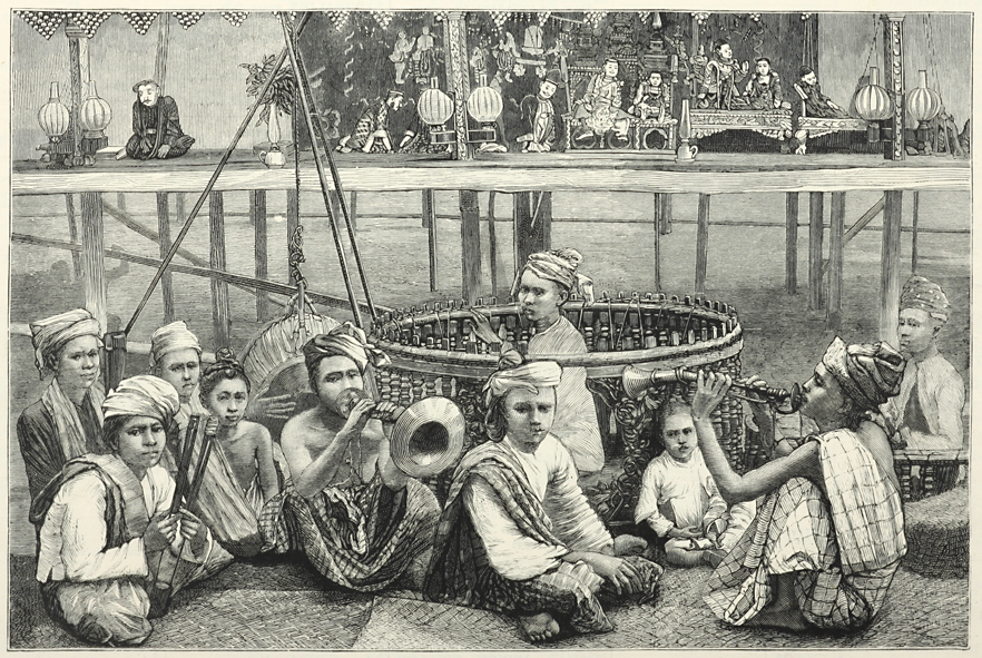 C19th engraving of Burmese puppeteers. From the original edition of, The Graphic