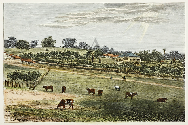 C.19th engraved viwe of Lindsay House which was built by John Howard Angas for his father George Fife Angas.