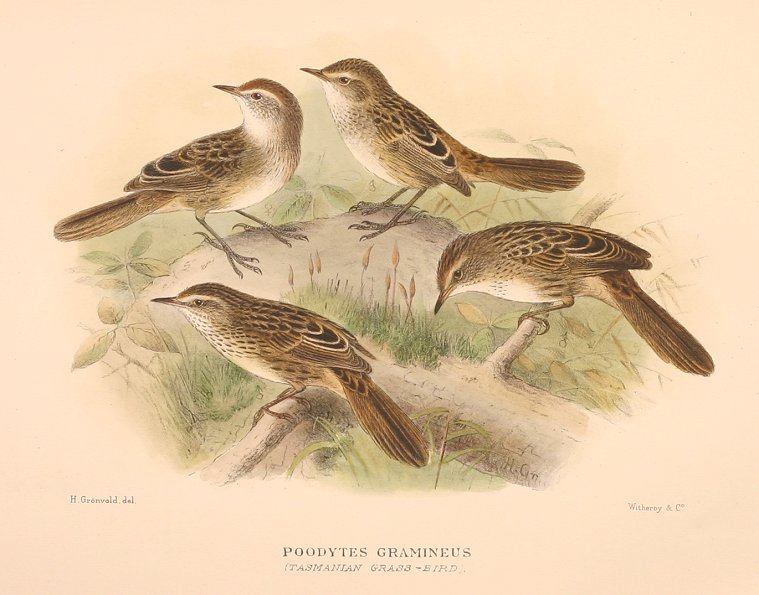 Gronvold was a Danish born artist who, after studying, entered the military as a draughtsman. On leaving Denmark he obtained work at the British History Museum in London. This image is from the last great bird series, The Birds of Australia by G. Matthews and is rarer than John Gould’s work on Australian birds, with only 225 sets done. It was the last series produced to use hand colouring rather than colour printed lithography for the illustrations.