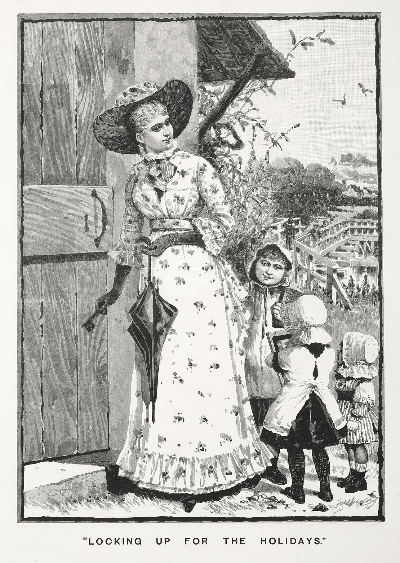 Rare supplement of an Australian family locking up to go on holidays. From the original edition of the Australasian Sketcher.