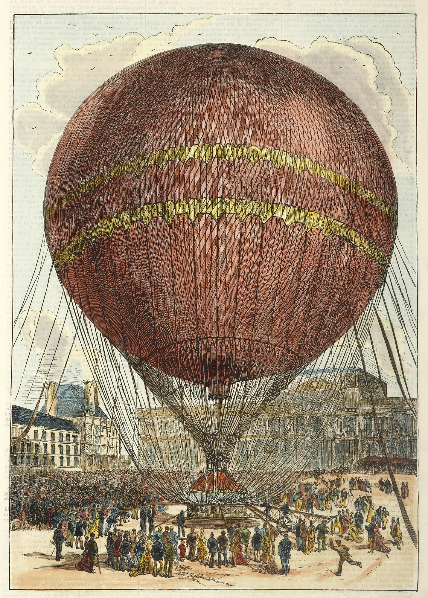 Image showing Henri Giffard’s captive balloon ascension at the Place du Carrousel, Tuileries, Paris in 1878. The balloon was the first passenger-carrying air balloon which created a sensation at the time, offering its passengers an extraordinary opportunity to see their … Read Full Description