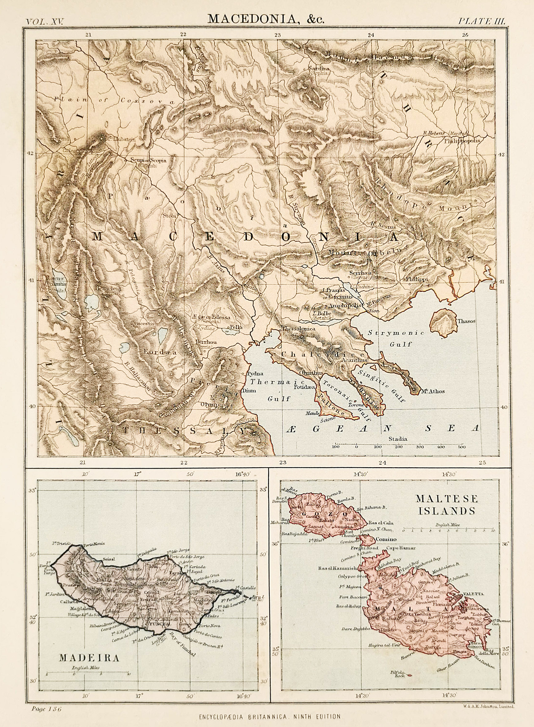 Detailed map of Macedonia, Madeira and Malta.
