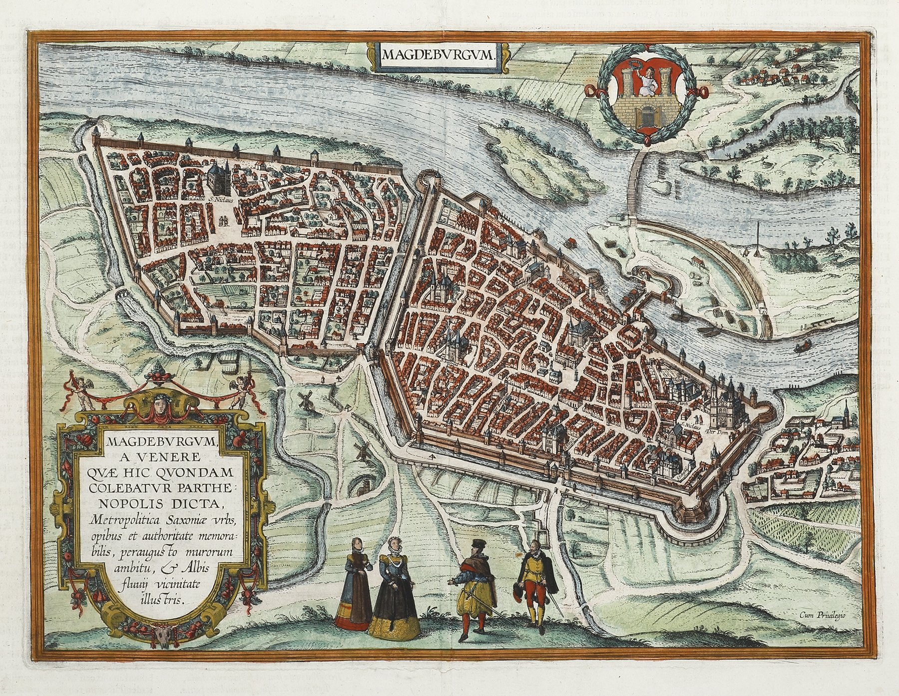 Magdeburg was called Parthenopolis (virgin city) after Venus, who was once worshipped here: it is the capital of Saxony, remarkable for its wealth and power and known for its narrow city walls and its proximity to the Elbe.