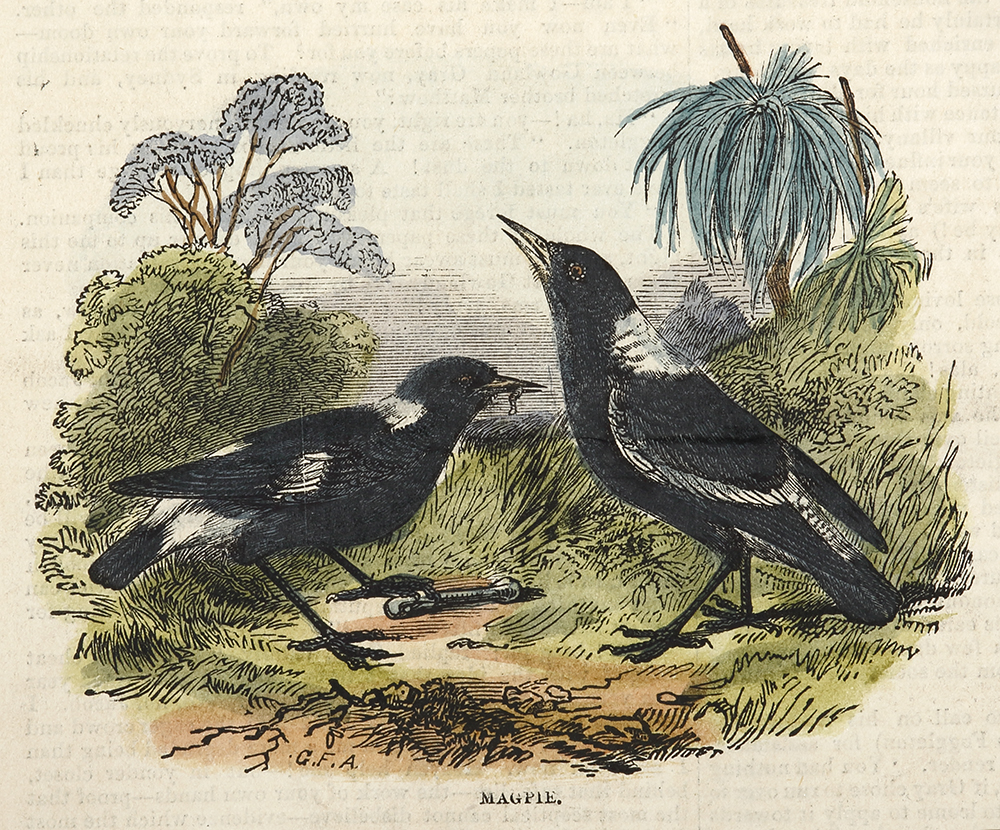C.19th engraving of the Australian Magpie.