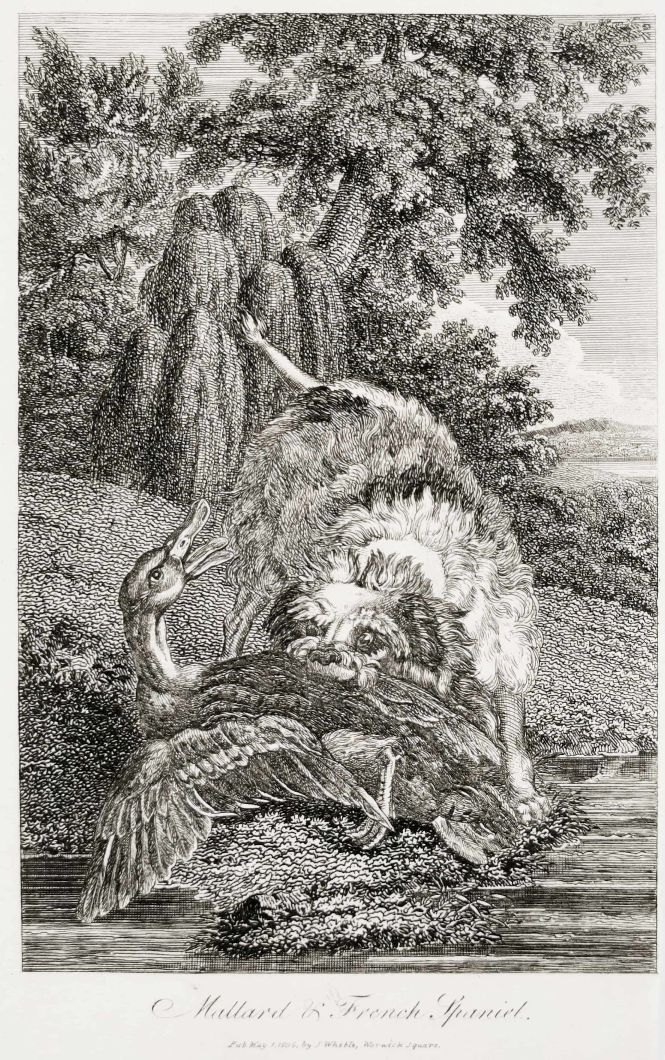 James de Connick established the first breed standard for the French Spaniel in 1891. French Spaniels were thought to have originated during the Crusades of the 11th century and was referred to as a specific type of Spaniel by 1660 and was noted as being distinctive from the King Charles Spaniel of the Holland type. The breed was popular during the Middle Ages with it used for falconry and as a settling dog for net hunting. They became a favourite of French Royalty and Kings and Princes at the royal courts of Versailles favored them over other breeds of hunting dogs. From the original edition of the, "The Sporting Magazine" which noted that the French Spaniel "The rough French Spaniel has been found the best companion on these occasions: he watches the conduct of the sportsman, and, with a velocity unequalled, darts on the wounded prey, presents it with all possible speed at the feet of his master."