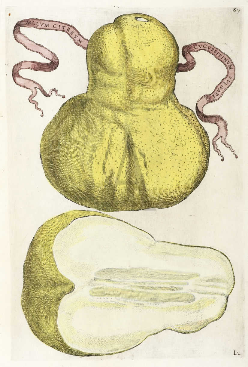 From Giovanni Battista Ferrari’s, Hesperides sive de Malorum Aureorum cultura et usu Libri Quatuor. This series of famous engravings of the Citrus were the work of seven important artists and the engravings were done by Johann Friedrich Greuter and Cornelis … Read Full Description
