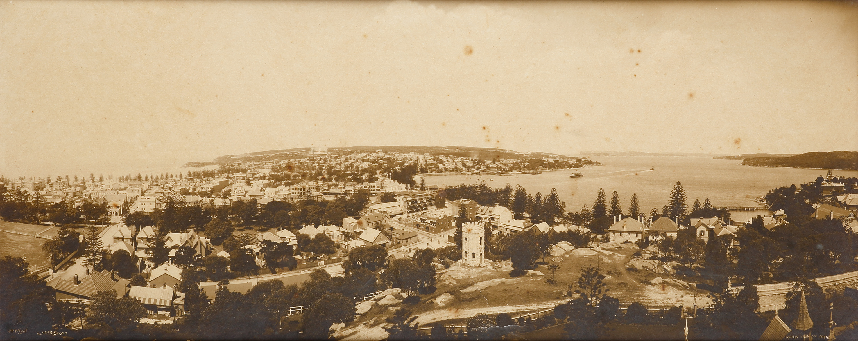 Silver gelatin photographic panorama of Manly in original period oak frame by Robert Vere Scott. Collections: New South Wales State Library: CALL No. PXD 1381