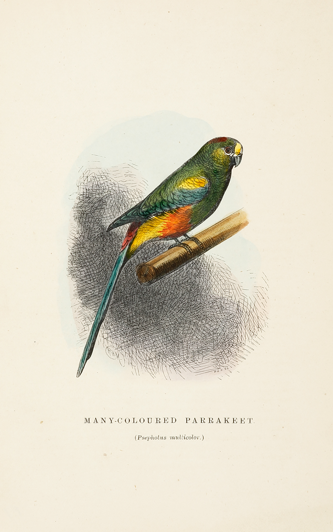 Scarce c.19th hand coloured engraving of the Mulga Parrot.