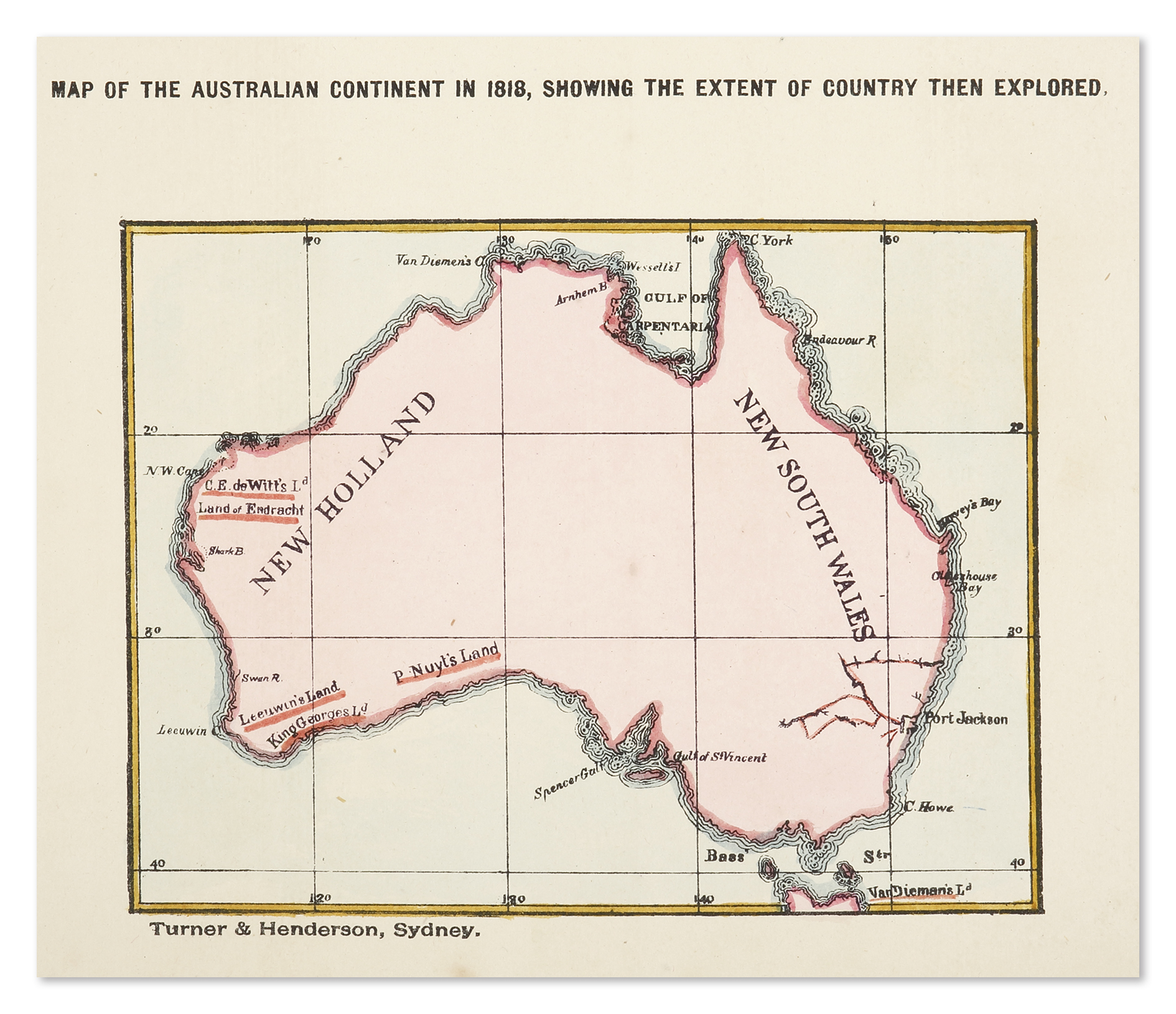 Small late C19th map of Australia showing the continent as it was after the explorations and charting carried out by Matthew Flinders.